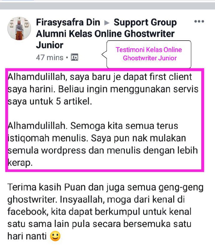TESTIMONI 2 - DALAM KELAS SUDAH DAPAT JOB GHOSTWRITING!
